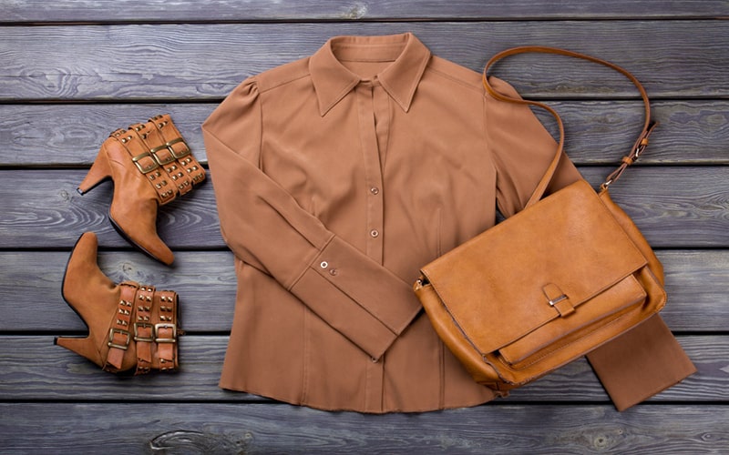 - پوشیدن کفش قهوه ای زنانه با لباسهایی به رنگهای خاکفام (Earth-Toned)